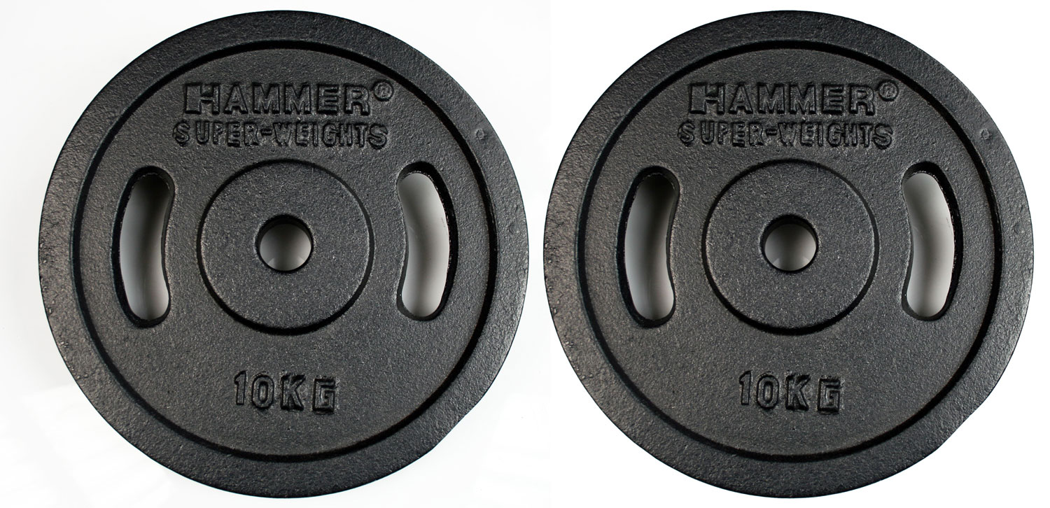 Hammer Håndvægtskiver 2 x 10 kg er uundgåelige for dedikerede styrketrænere. Disse vægtskiver giver dig mulighed for at tilpasse belastningen og forbedre din træning